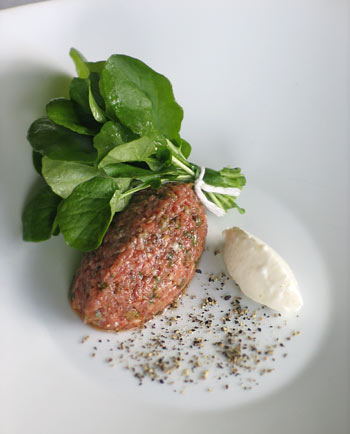 Sirloin and Oyster Tartare with Bouquet of Greens and Horseradish Cream