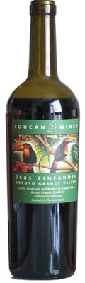 Six years after their grafting, those cuttings have matured into healthy, hardy Zinfandel vines (with a little Petite Sirah mixed in, just like the old-style “mixed black” vineyards common at the turn of the century) and Doug has proved an able and talented student of Dusi’s experience. Toucan Wines now produces about 300 cases of Zinfandel, which is actually a field blend of 89% Zinfandel and about 11% Petite Sirah. Hand harvested and meticulously sorted to remove any damaged fruit, the wine is fermented in separate vineyard blocks with a cold soak and extended maceration for those lots which seem to need it. After an overly-gentle pressing in a traditional wooden basket press, the wine is placed into a mix of French, Hungarian, and American oak barrels, of which 70% are new. The wines are never fined or filtered.