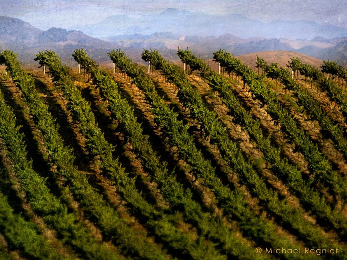 “Some of my clients’ most prized vineyards are those that are the most extreme in their aspect. Mountain vineyards with their steep slopes offer so much more to the photographer’s eye than flat, endless rows of vines on a valley floor. The regularity of the rows of vines make the changing slopes underneath that much more visible.” — Michael Regnier