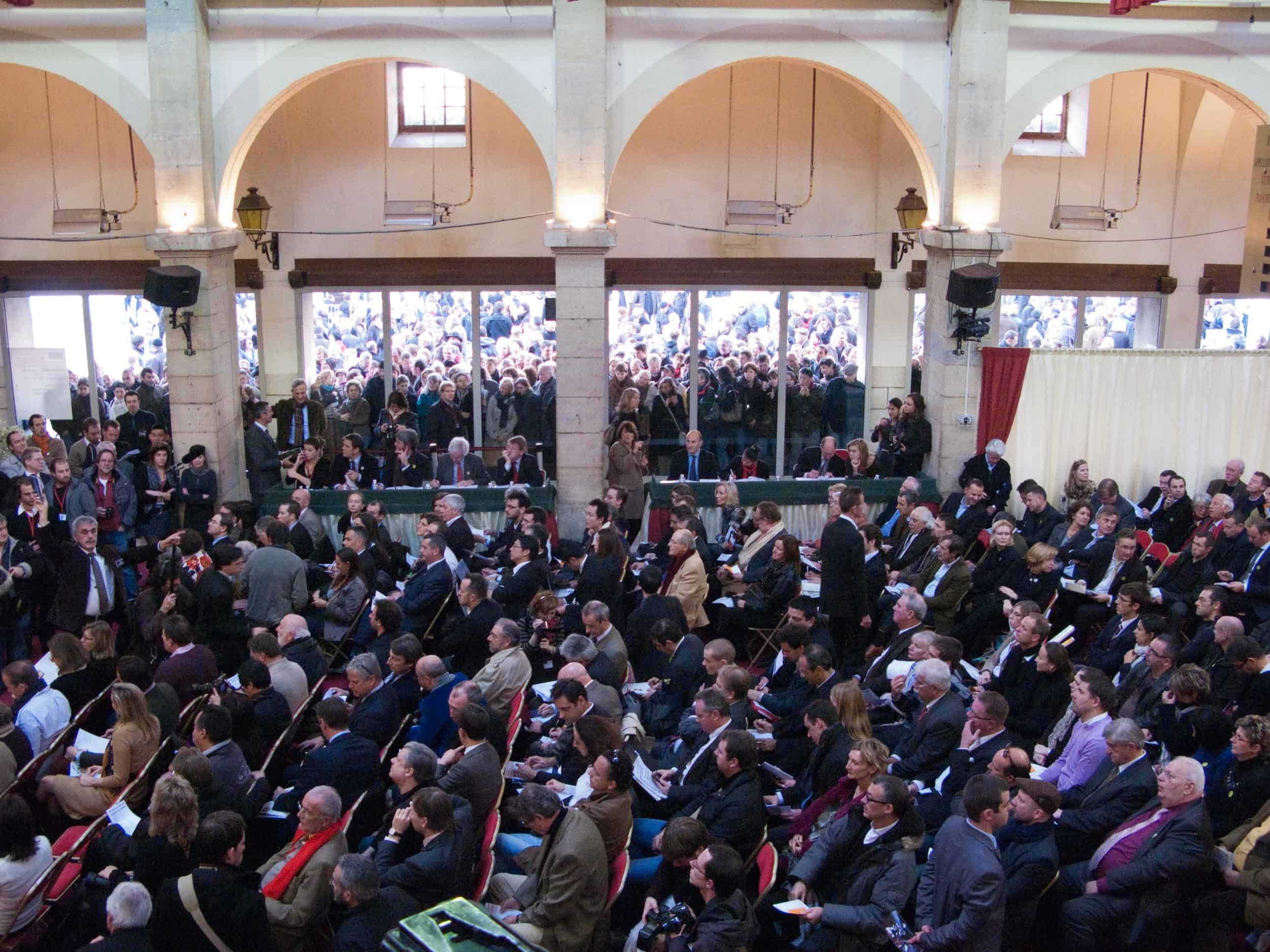 I thought at first it was simply because actor Fabrice Luchini was there, but the crowds persisted long after he left the building. It takes a certain amount of dedication to stand outside in the cold and watch barrels of wine be auctioned off for six hours. Whether these were tourists or locals, and whether they had any stake in the outcome I do not know, but they were there and rapt.