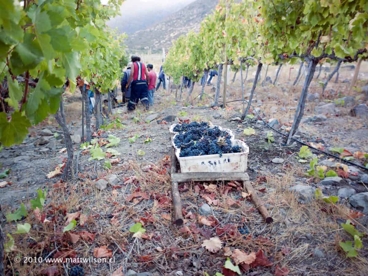 South American wine regions have a frontier-like quality, a rusticity that has been bred out of some other new world regions. The ruggedness of the Andes certainly contributes to this feeling, but then there are little touches, like the branches that these workers are using to carry freshly harvested Syrah in the Choapa Valley. Old school technology. — Alder Yarrow