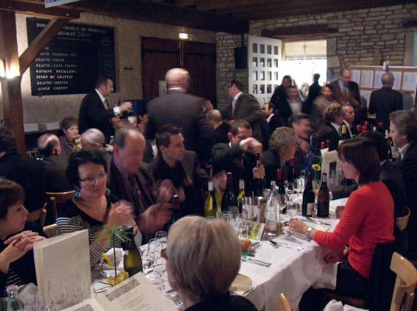 The contrast between La Paulee and the kinds of organized “offline” tasting events that collectors and members of various wine communities organize couldn’t be more stark. This is not a 100-point wine dinner, where everyone brings a top scoring wine and the evening has an undercurrent of competition and ego stroking for those who bring the most expensive bottles. The atmosphere at La Paulee can’t escape being described as anything other than gleeful, and its historical role as the party that followed the hard work of the harvest persists in the delight and camaraderie that everyone brings to the event.