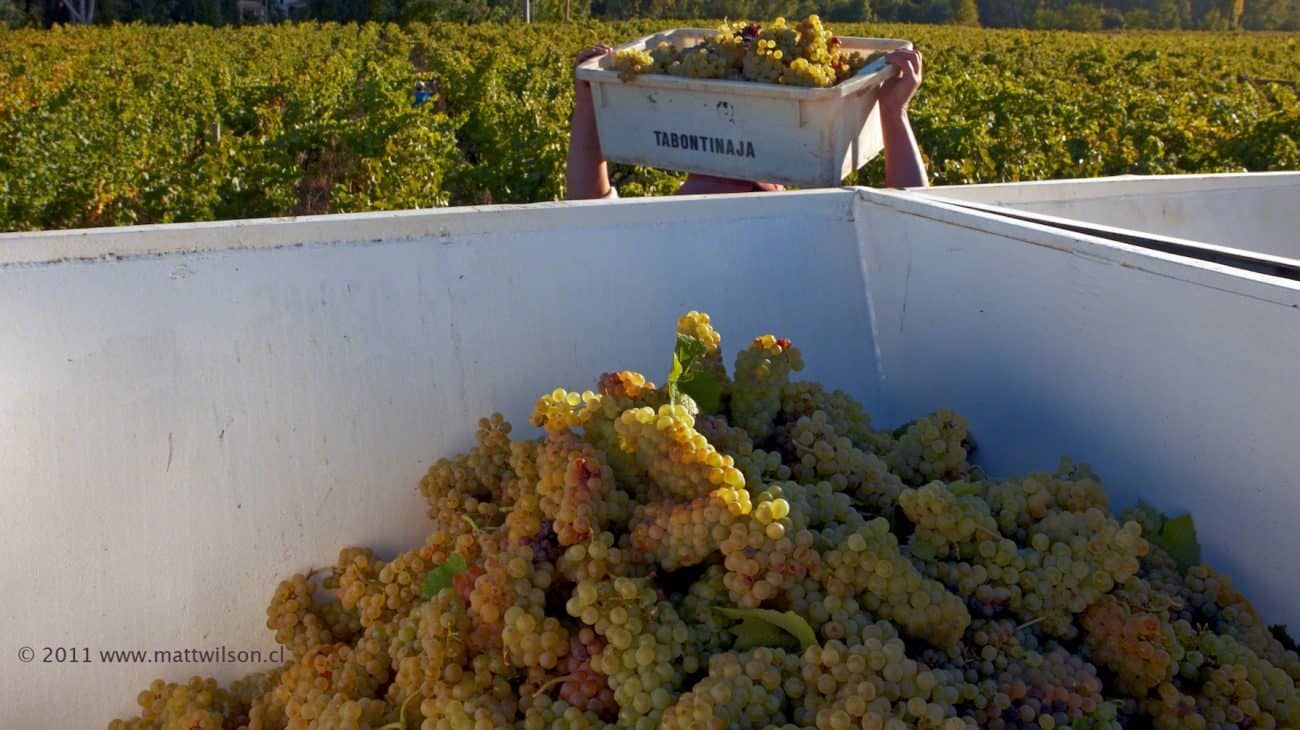 This could have been the scene many places in Chile a couple of months ago. The harvest there has completed over the past few months. These grapes are Chardonnay, from the Maule region, I believe. Chardonnay is one of the more underrated products of the Chilean wine industry, especially when made with restraint. — Alder Yarrow