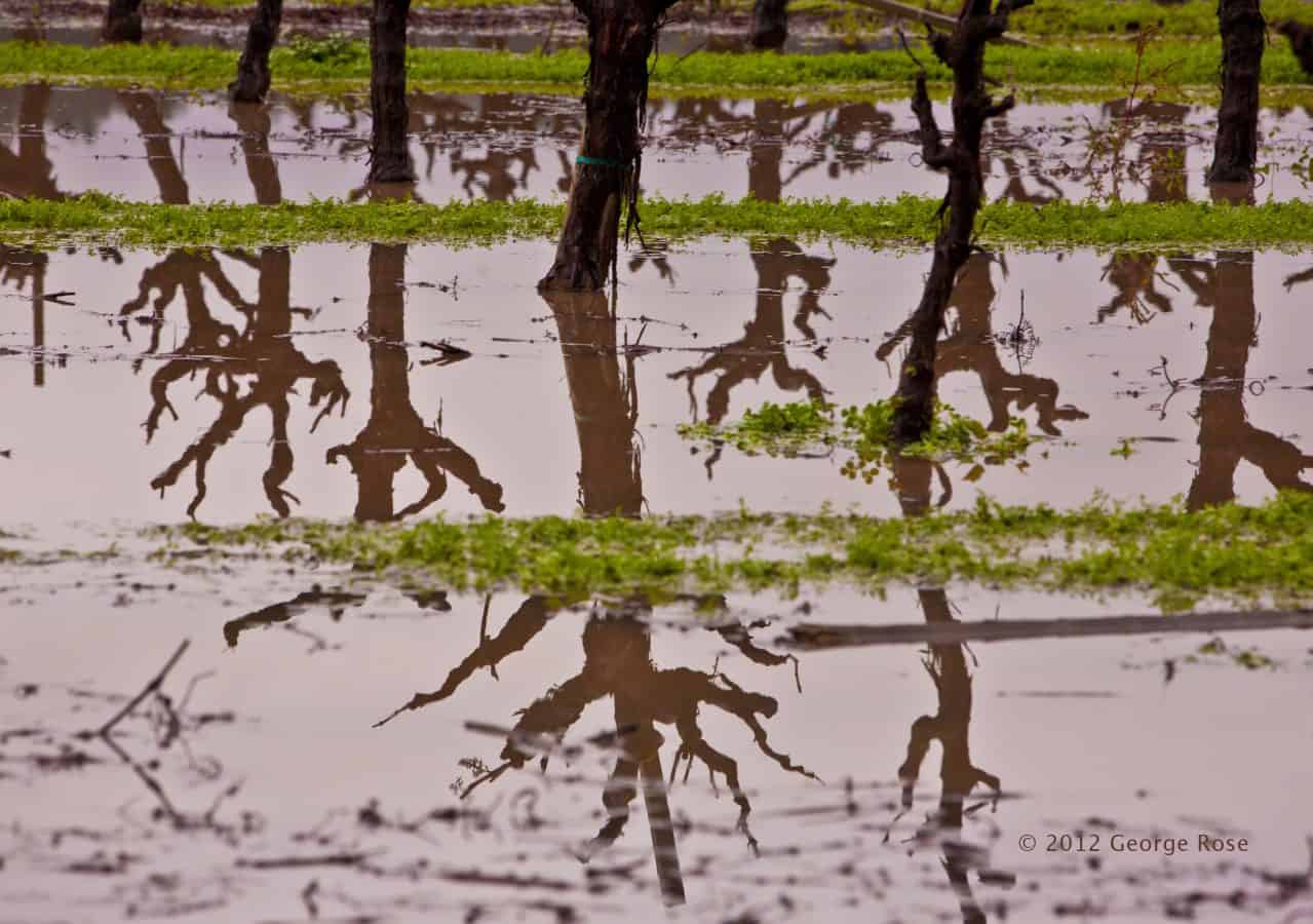 HEALDSBURG, CA: Dormant grapevines are left a muddy mess after a relentess five-day storm on December 2, 2012, in the Russian River Valley. More than a 18 inches of rain fell during a period of five days. Forecasters are called it “The Pineapple Express,” or a “river of moisture.”