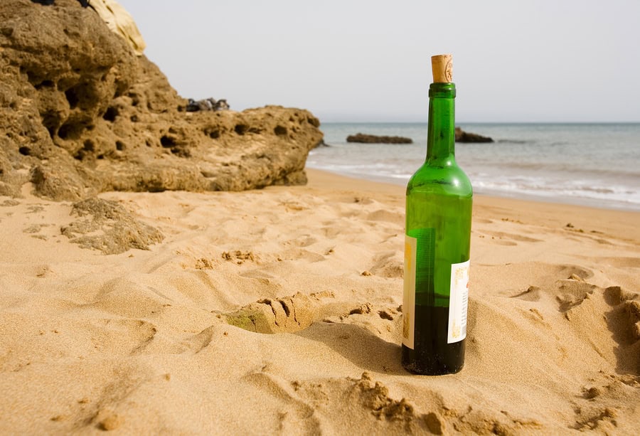 Bottle of wine on the beach courtesy of Bigstock.Com
