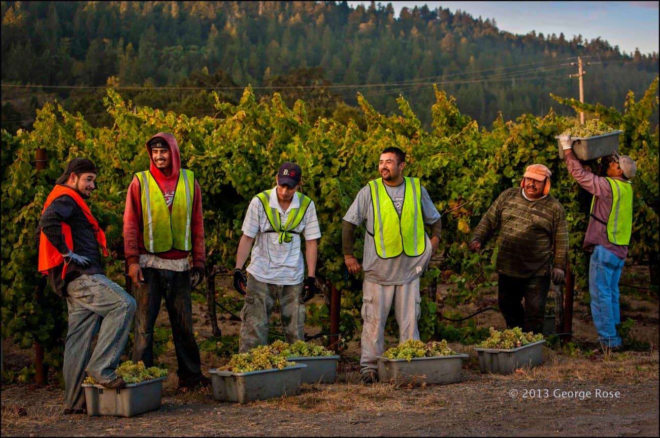 HEALDSBURG, CA: Vineyard workers picking Semillon grapes in Knights Valley during the 2012 vintage near Healdsburg, California. Scenes like this have occupied much of California wine country for the past few weeks.
