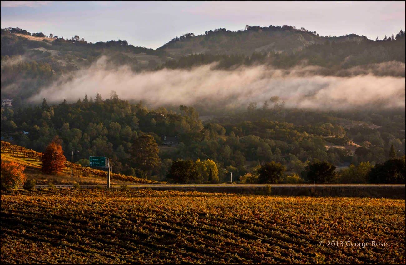 GEYSERVILLE, CA: Vineyards in Sonoma County’s Alexander Valley begin to turn color near Geyserville, California. This is one of the most picturesque times to visit California wine country. Much of Sonoma and Napa are currently showing their colors.