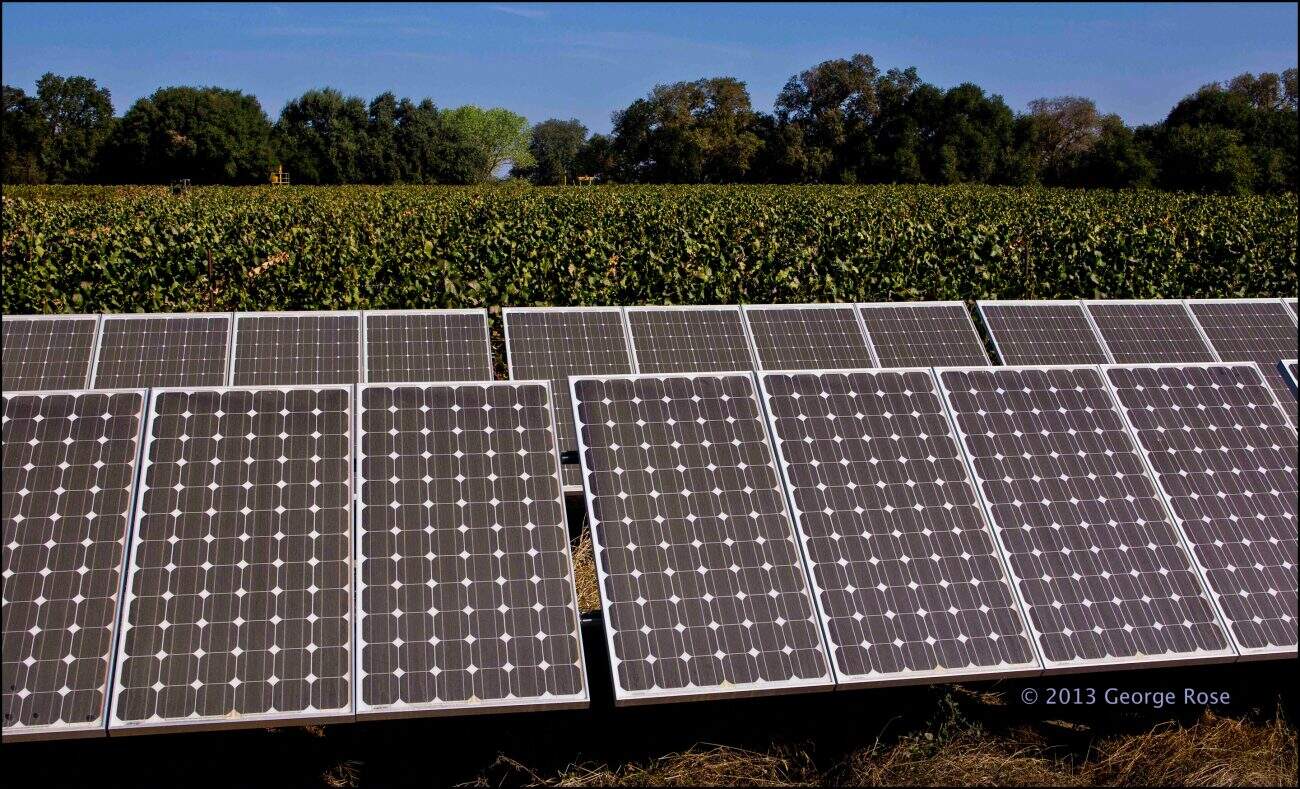 LODI, CA: A solar panel at Lange Twins Winery collects the sun’s energy near Lodi, California.
