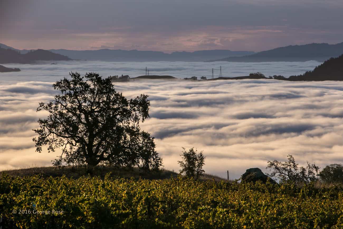 HEALDSBURG, CA: Kendall-Jackson’s Sentinel Oak is perched above the fog near Healdsburg, California. The company has been buying up more boutique winery properties lately, including Siduri, and most recently Copain.