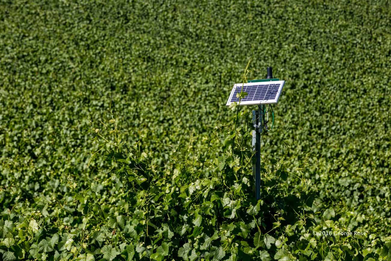 HEALDSBURG, CA: A vineyard weather station in a Westside Road Pinot Noir vineyard in the Russian River Valley is viewed above the vegetation near Healdsburg, California. With nearly all the irrigation ponds and reservoirs in Sonoma County filled, Wine Country is hoping for another wet winter to ease drought woes completely.