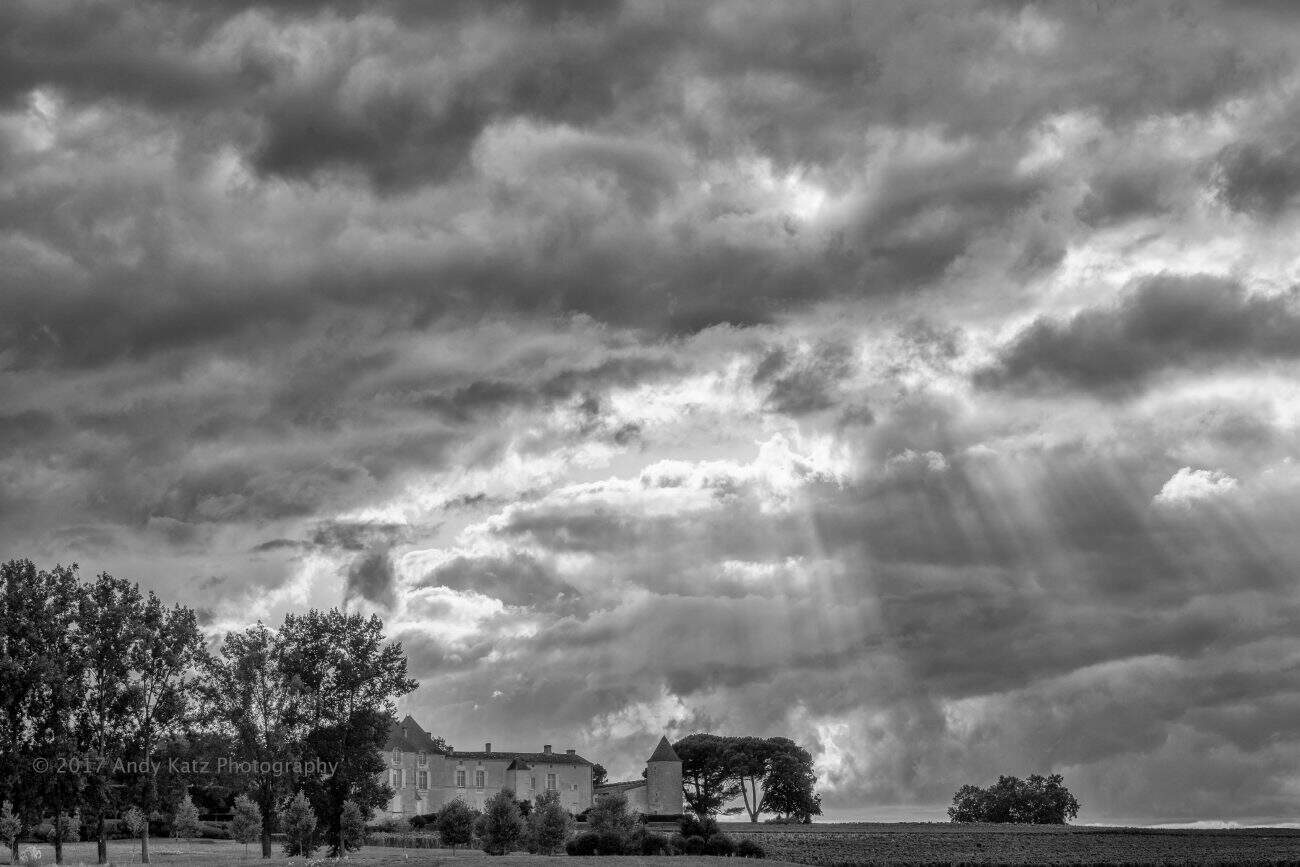 SAUTERNES, FRANCE: Stormy skies spill light onto the vineyards of Château d’Yquem in Sauternes, an appellation within the Graves region of Bordeaux. In the famous 1855 Classification of Bordeaux, d’Yquem was the only winery in the Sauternes region to be accorded the status of Premiere Cru Supérieur. Its sweet dessert wines are among the most famous, and long lived, in the world.