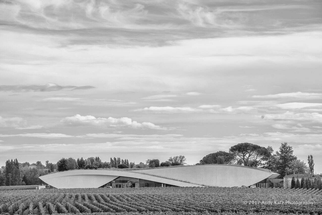 SAINT-ÉMILION, FRANCE: The alluring curve of the roof designed by Christian de Portzamparc mirrors evening clouds above Chateau Cheval Blanc in Bordeaux. Cheval Blanc, which means “white horse” in French, is one of only four estates elevated to the rank of Premier Grand Cru Classé in the classification of Saint-Émilion wine.