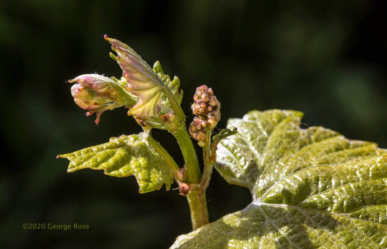 SANTA MARIA, CA: A chardonnay grapevine in a Tepusquet Bench vineyard begins to unfurl under warm, sunny skies near Santa Maria, California. A mild and slightly early Spring (in some places) has most vineyards in Santa Barbara county and throughout California on track for another vintage. Even in the midst of a pandemic, nature rolls onwards.