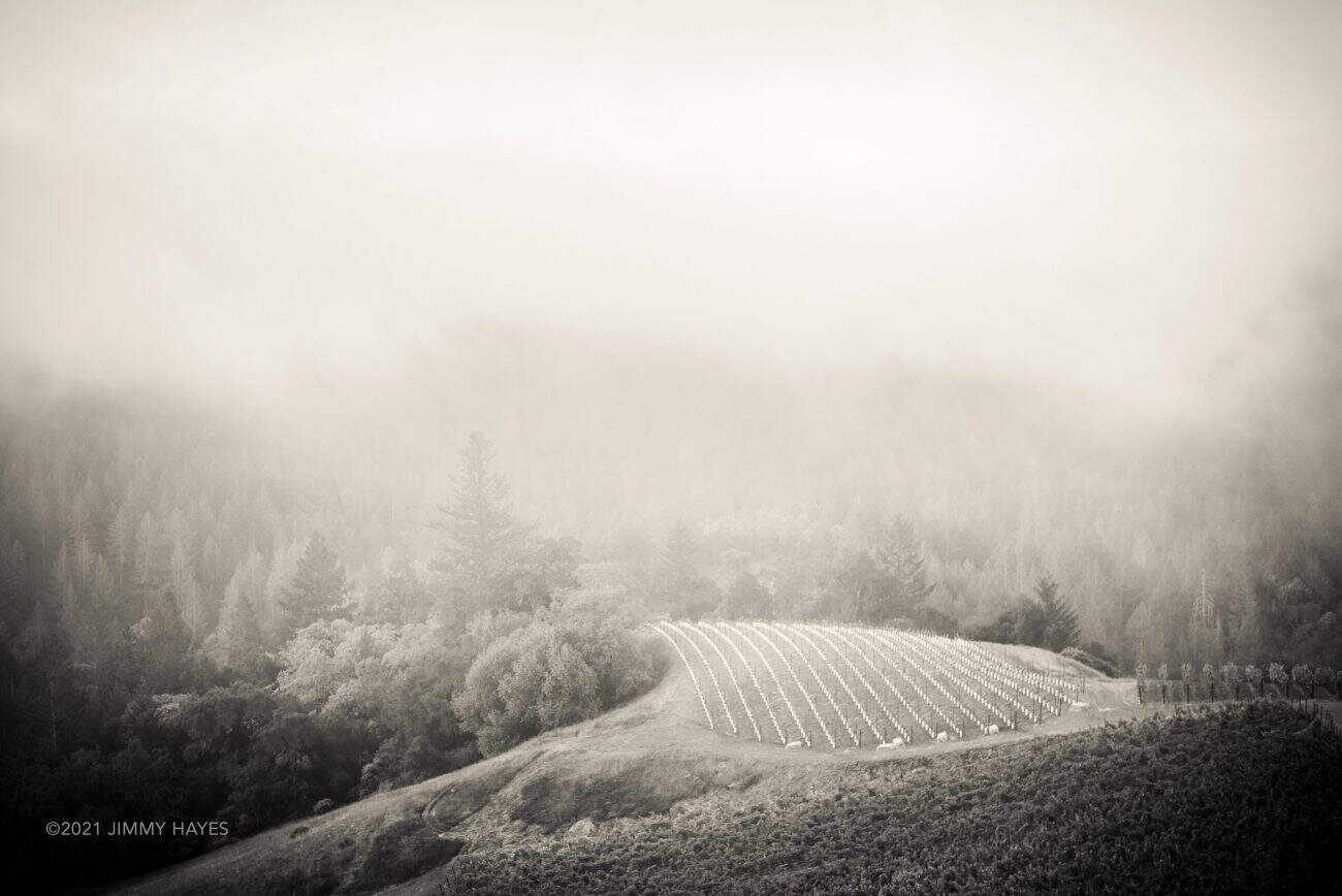 A rolling knoll emerges from the fog to reveal new plantings at Cornell Vineyards on the Sonoma County side of Spring Mountain. On the Sonoma Side, the wines are generally either labeled Sonoma County or, in some cases, Fountaingrove District. Cornell Vineyards is a boutique producer of Cabernet Sauvignon and Chardonnay launched with the 2013 vintage.