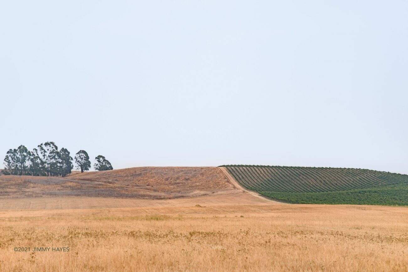 Gentle undulations of green vineyards and golden fields mark the topography of the Los Carneros American Viticultural Area, seen here close to Duhig Road. Spanning both Napa and Sonoma Counties, Carneros abuts the San Pablo Bay, which provides cool maritime influences and warm days to make it a popular region for Pinot Noir and Chardonnay in particular.