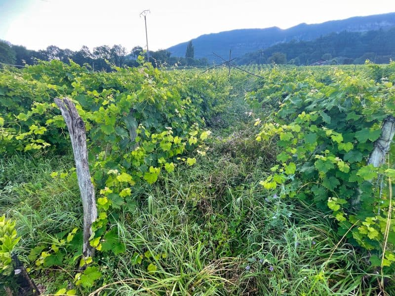 Curtet says that at some point he’s interested in farming all the immediate genetic relatives of Mondeuse, as if there’s something about having a complete family tree growing in one place that provides a sense of completeness and harmony. At the moment, the scientific jury is still out as to whether Mondeuse Noir is the child or the parent of Mondeuse Blanche.