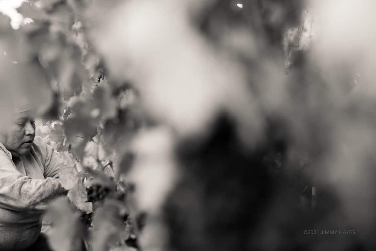 A worker harvests Cabernet Sauvignon on Pritchard Hill, above Napa Valley. Women play an increasingly important role in the highly-skilled vineyard labor force of California Wine Country. Some vineyard managers even say they prefer female vineyard workers over their male counterparts.
