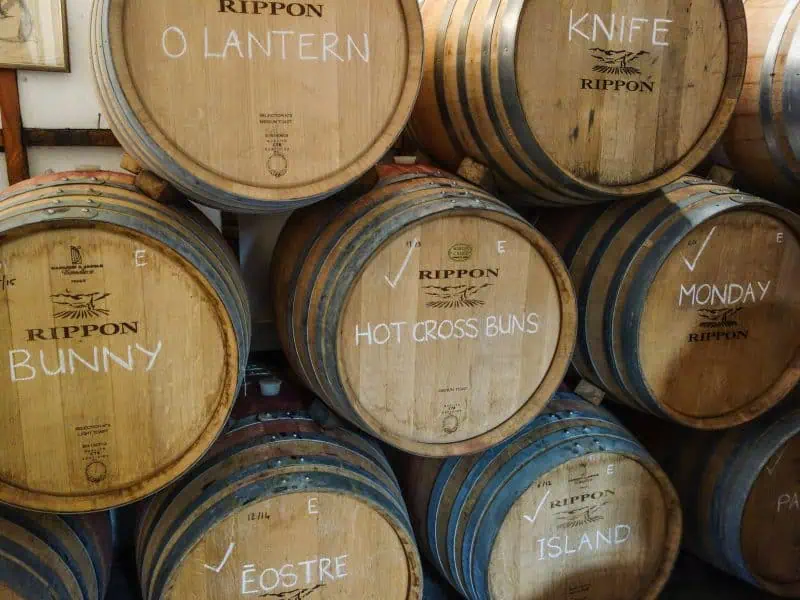 Most of the fruit from the main vineyard, Tinkers Field, gets blended together and simply becomes a Rippon “Mature Vine” wine, with the younger vines bottled separately under the moniker “Jeunesse.” A small block of the oldest vines is bottled separately as “Tinker’s Field” each year, as is another block known as “Emma’s Block,” after the Nick’s great-great-great grandmother, who was the first in the family to take the surname Mills.