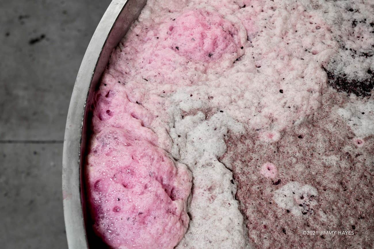 An active Pinot Noir fermentation bubbles and foams at Kistler in Forestville, CA as yeasts do their work. Winemakers get all the credit, but the yeasts really do all the work, converting the sugars of the grapes into alcohol, and busting those sugars apart from many other complex molecules that contribute to wine’s flavors and aromas. Have you thanked your yeasts recently?