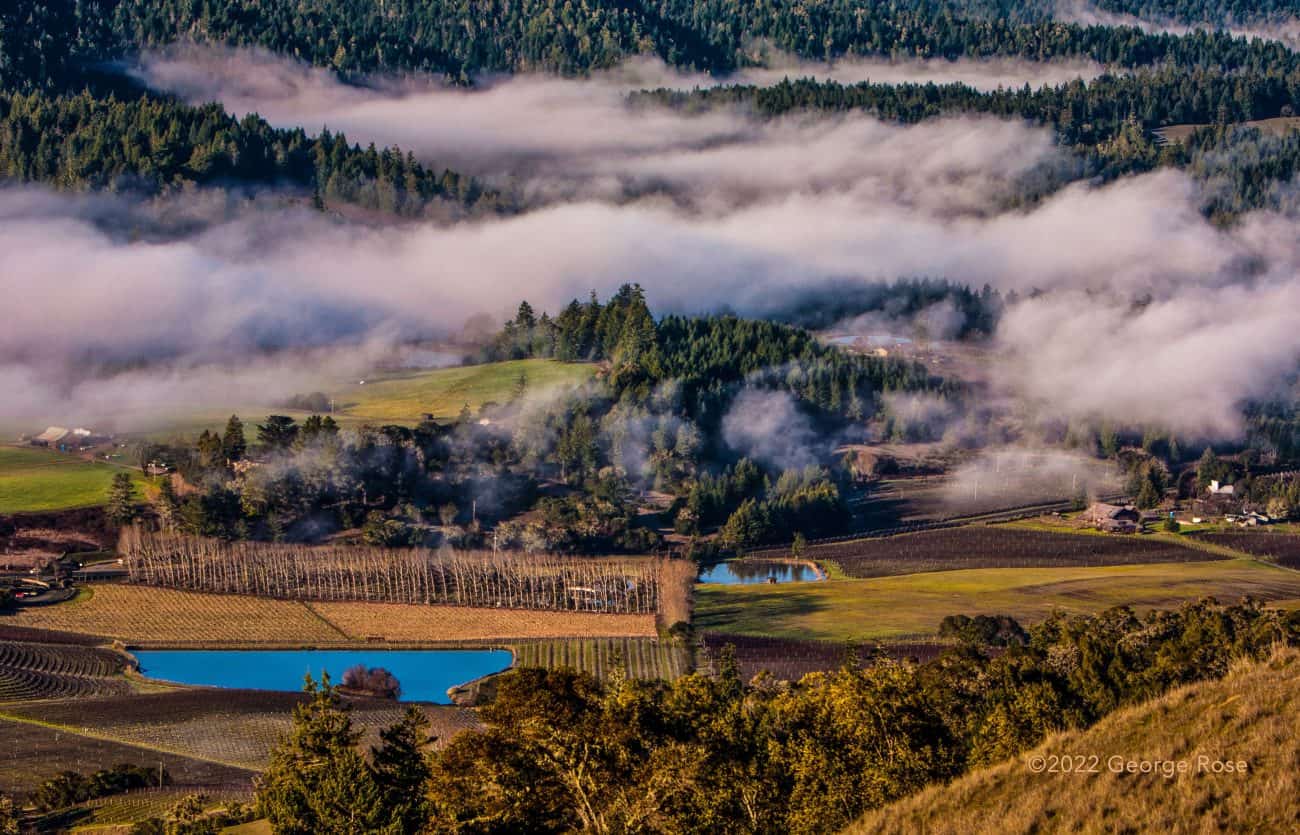 Fog drapes itself along the hills and valley floor at Navarro Vineyards in Mendocino’s Anderson Valley. One of California’s under-appreciated and more out-of-the-way wine regions, Anderson Valley grows some of the state’s finest Pinot Noir in its narrow, fog-laden valley.