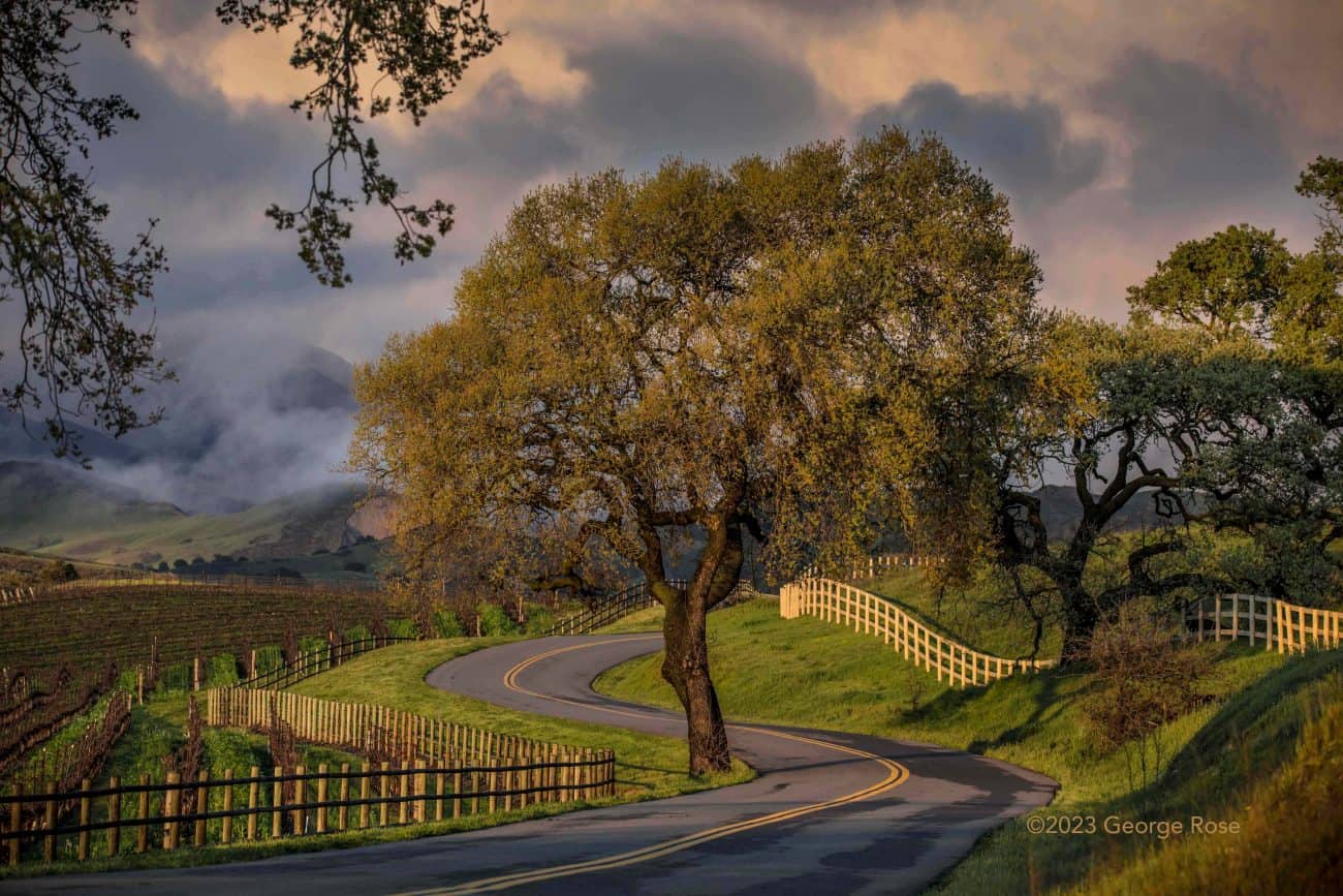 The road into Santa Barbara’s Happy Canyon snakes around vineyards and a majestic oak, as vines show their winter silhouettes against the new growth of green below. Santa Barbara’s Happy Canyon is an unusual part of the Santa Ynez Valley that, by virtue of its topography, can ripen Bordeaux grape varieties in a traditionally cool-climate region better known for Pinot Noir and Chardonnay.