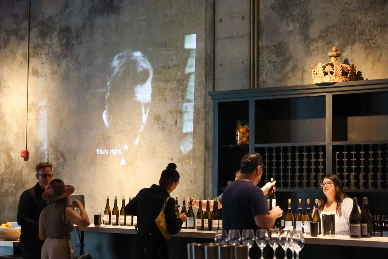 The tasting, held at Gallo’s Louis Martini winery in Napa (and pictured above), was a rather low-key affair, but in classic Petroski style, it featured old Fellini movies projected on the wall, energetic music, sommelier-like service, and a paid photographer, which is why you’re getting a rare shot of me at work as part of this article.