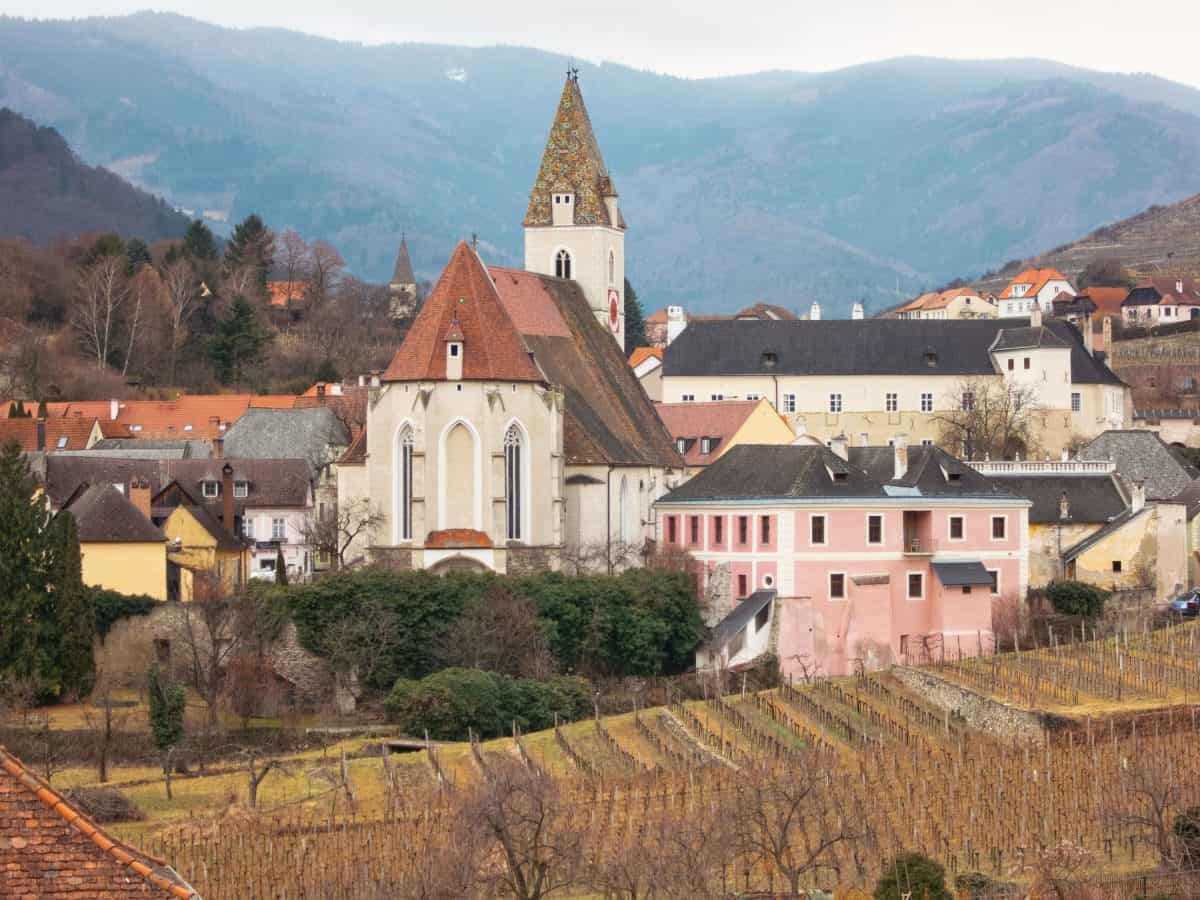 The church in the town of Spitz, Austria stands watch over some of the Wachau Valley’s most prized vineyards during winter. In some of the small towns lining the valley sometimes it seems like nearly every space not taken up by buildings is filled with vines. This steep-walled valley is known for producing some of Austria’s finest Riesling and Grüner Veltliner.