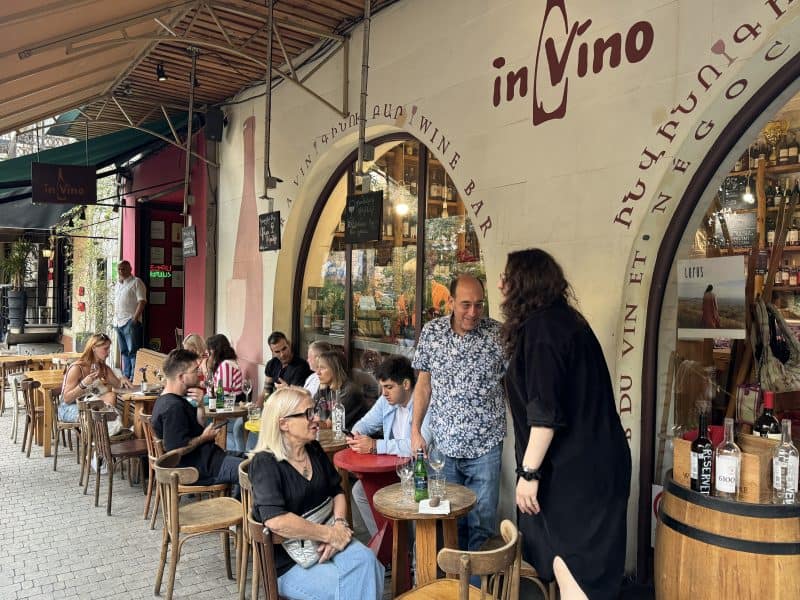 Resembling nothing so much as a vibrant section of New York’s East Village, Saryan Street is now colloquially referred to by locals as “wine street.” For many blocks in either direction, restaurants and bars of every description fill the street. The majority of these overflow onto sidewalk tables and benches, filled all night with people drinking, eating, talking, and enjoying life.