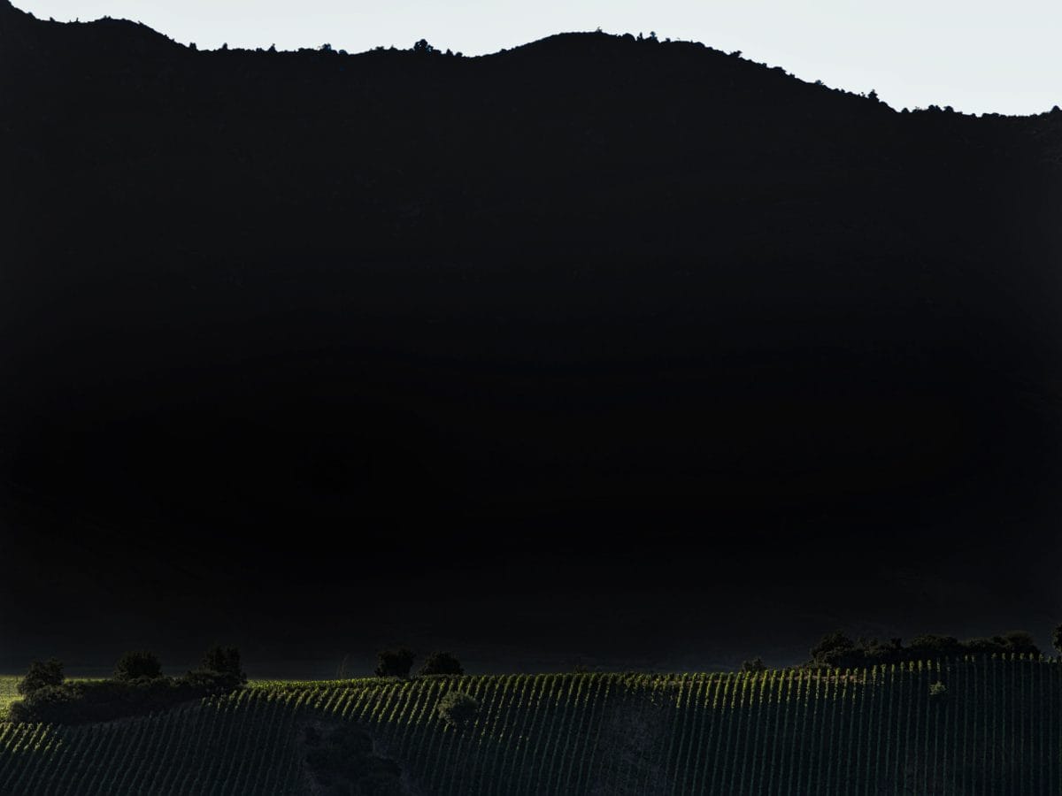 A ridgetop vineyard catches the last light of day against the dark escarpment of Andes foothills in Chile’s Maipo Valley. Sandwiched between the sea and the rugged mountains just south of the capital city of Santiago, Maipo is dominated by Cabernet Sauvignon plantings, which outnumber all other varieties by a factor of five.