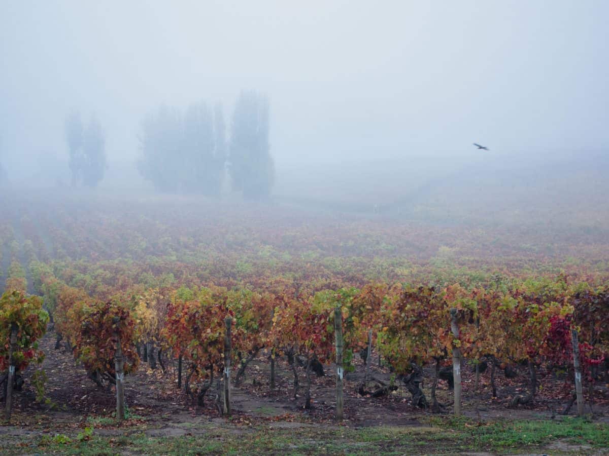 The famous Zen koan asks, “What is the difference between five?” I thought of that as I gazed upon the mist-shrouded vines of what is presumably Block Four at the Cucha Cucha vineyard in Chile’s Itata Valley. A mix of Pais, Carignane, and other varieties, the vines’ autumn colors contrasted nicely with the monochrome of the world through the mist.