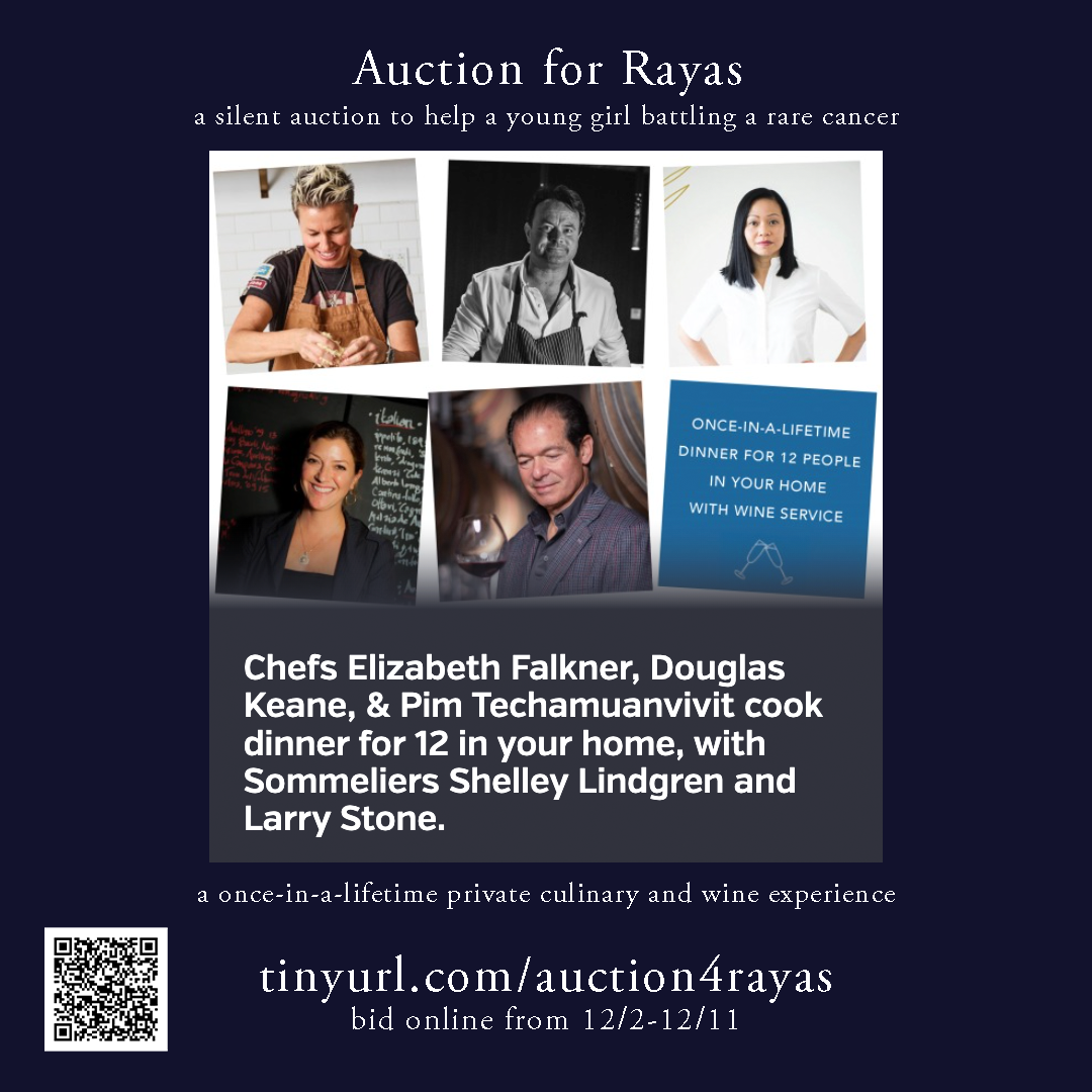 Recognizing that something had to be done, a core group of chefs, sommeliers, and wine professionals got together to build the Auction for Rayas, a silent auction to raise money to support Rayas and Keiko as they navigate this harrowing journey.
