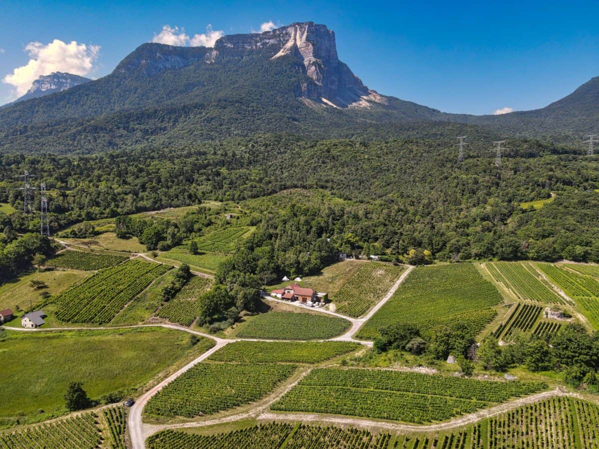 The massif of Mont Granier rises high above the Savoie appellation of Les Abymes and the vineyards of Domaine des Tres Lunes, which are planted in the limestone that has tumbled off Mont Granier over the years in several cataclysmic rockfalls and landslides. In these calcareous soils you will find the fairly rare grape Jacquère, which makes beautifully stony, sometimes saline, crunchy white wines.